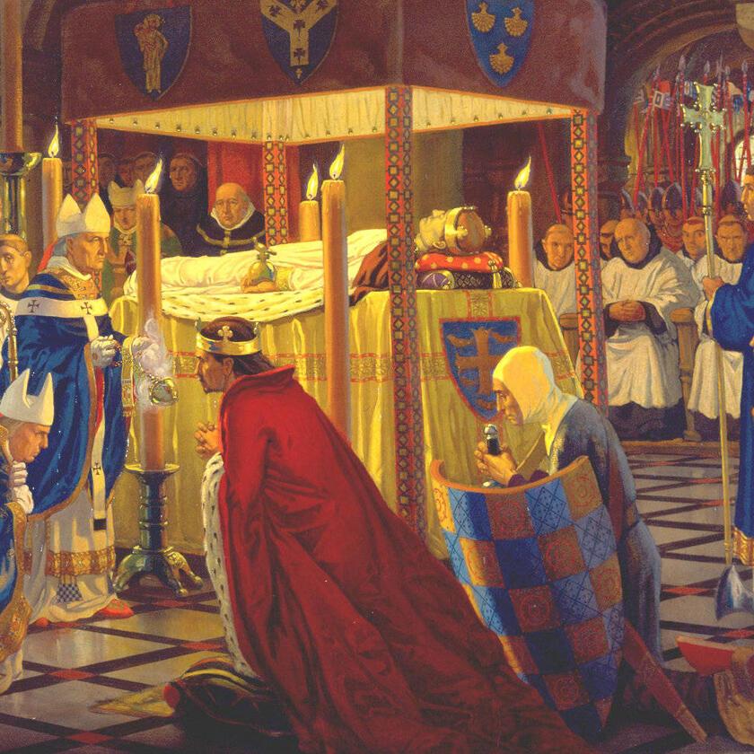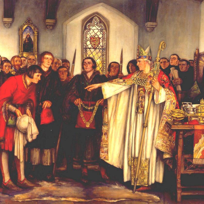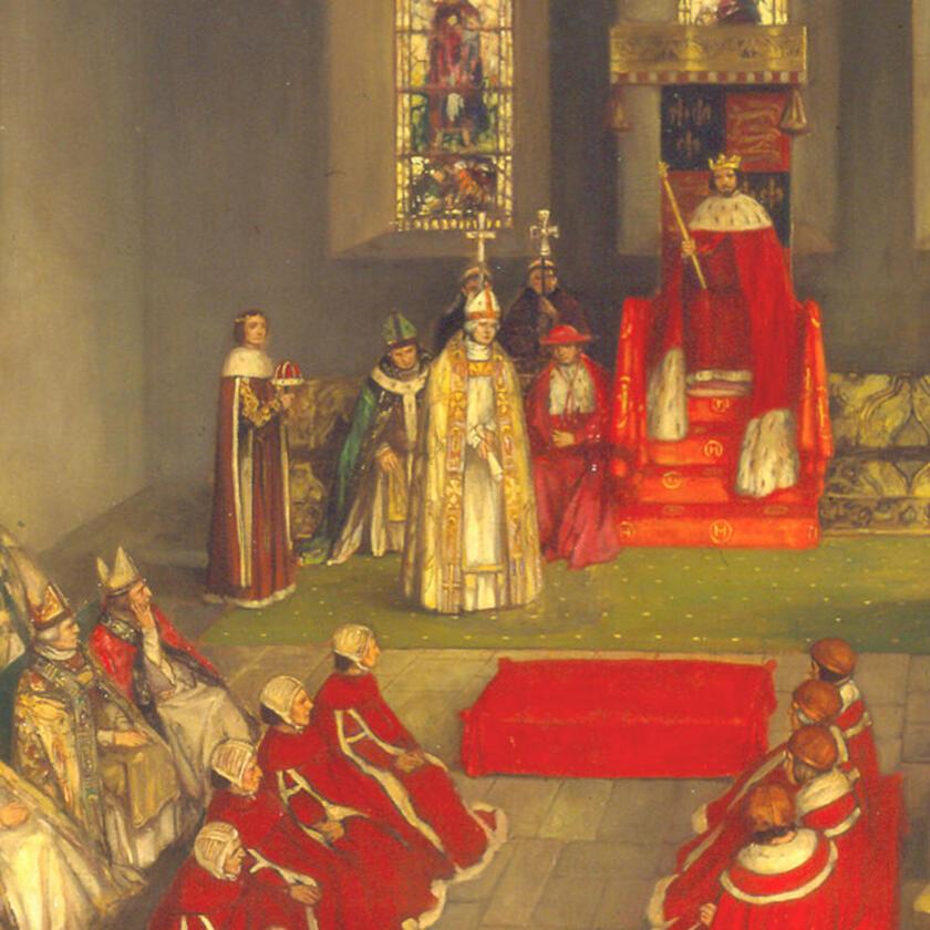 Dr. Jamieson Boyd Hurry, a local doctor with a particular interest in Reading Abbey, commissioned ten large oil paintings from 1909. All are artistic impressions of important events in the abbey’s history and aren't always historically accurate but do give an idea of its importance, scale and colour in the medieval period. The series was completed in 1923. All ten paintings are located in public spaces within Reading Museum and the Town Hall. You can view all of them on the Museum's collections online website (search for 'Hurry').