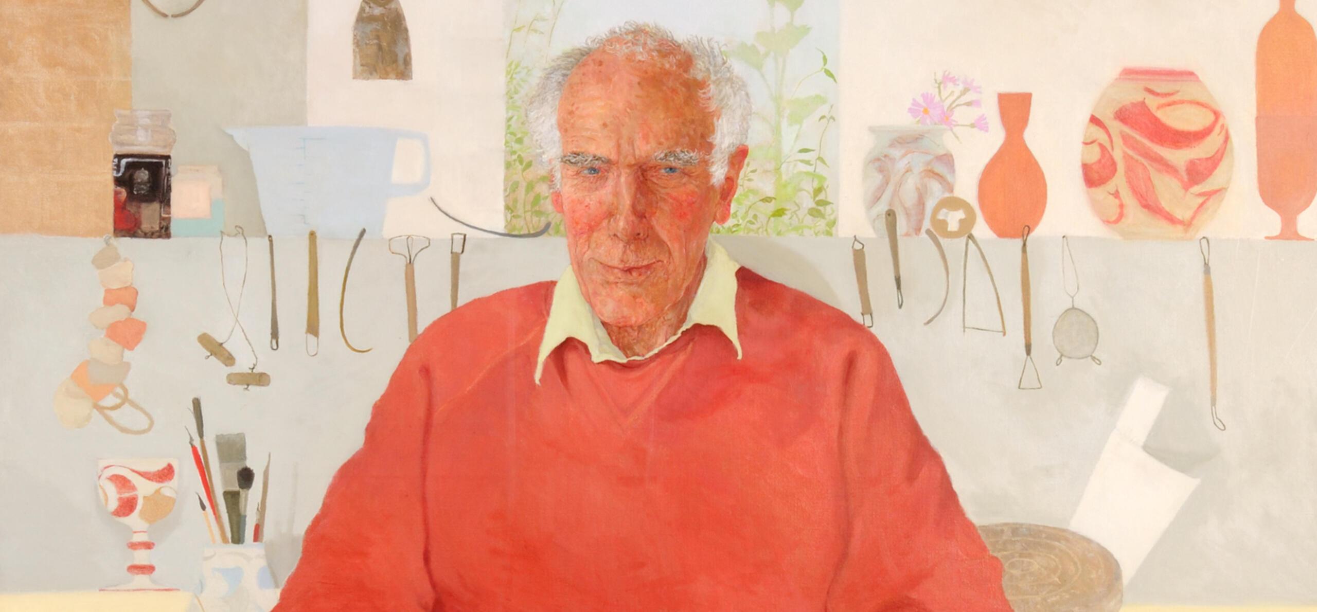 Earlier recognition had come came shortly after his 70th birthday when two of his patrons, Helen and David Watson, supported the Reading Foundation for Art to commission a portrait of Alan surrounded by the tools of his trade and in his potting sweatshirt.