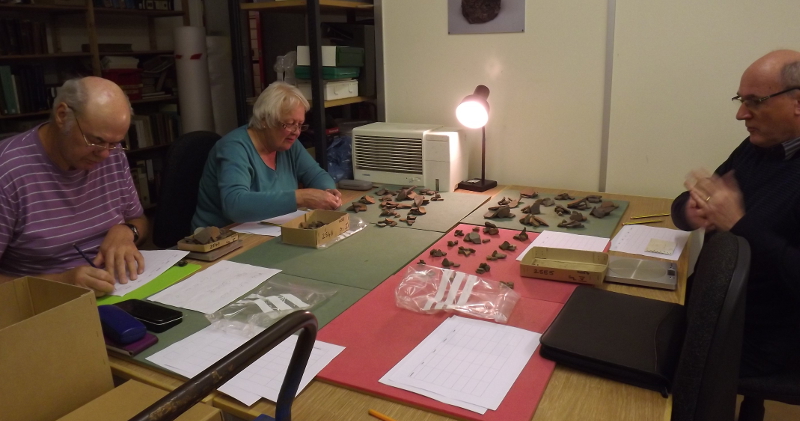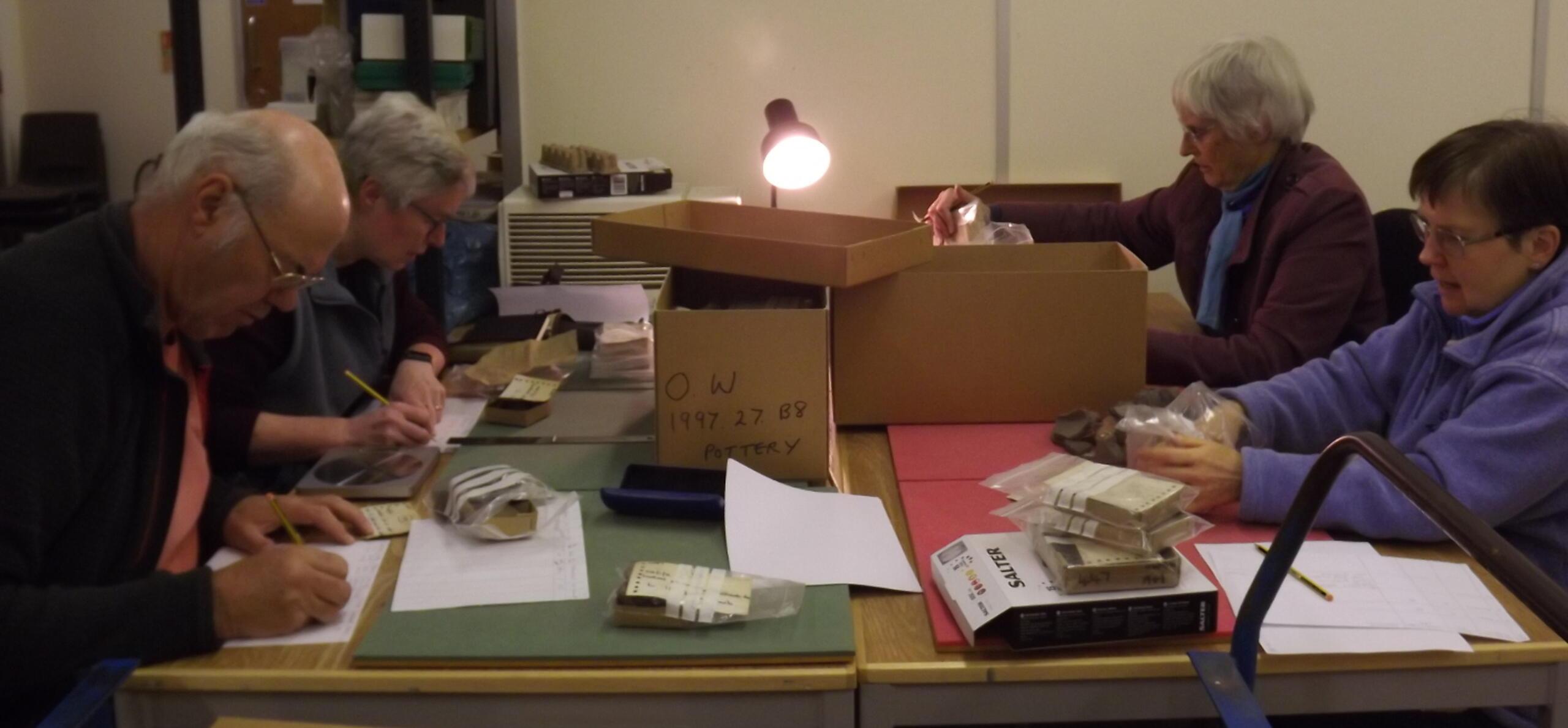 Old Windsor volunteers hard at work cataloguing pot sherds