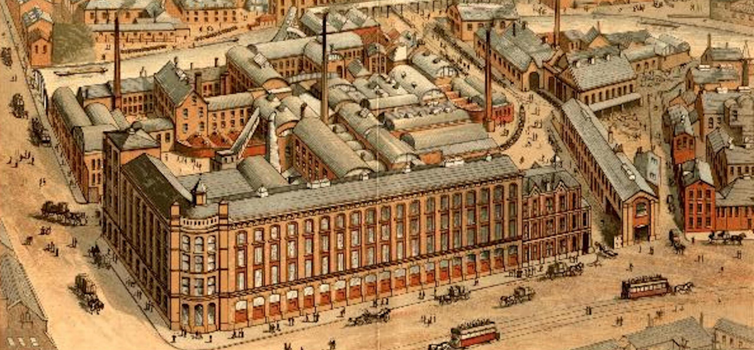 In the 19th century, Reading's largest companies used Britain’s colonial expansion to source ingredients and raw materials and to reach new markets for their products. Huntley & Palmers both exploited Reading’s global links and created new ones. As early as 1840, their Banbury cakes were sent to the USA, India, and Australia. In 1874, the firm boasted, ‘seldom a ship sails from England that does not bear within his ribs a Reading biscuit’. In his 1899 novel The Heart of Darkness, Joseph Conrad even used an image of an empty Huntley & Palmers tin as a symbol of European colonial power and destruction in Africa. Huntley & Palmers was famous for its biscuits tins that were made in Reading by Huntley, Boorne & Stevens.