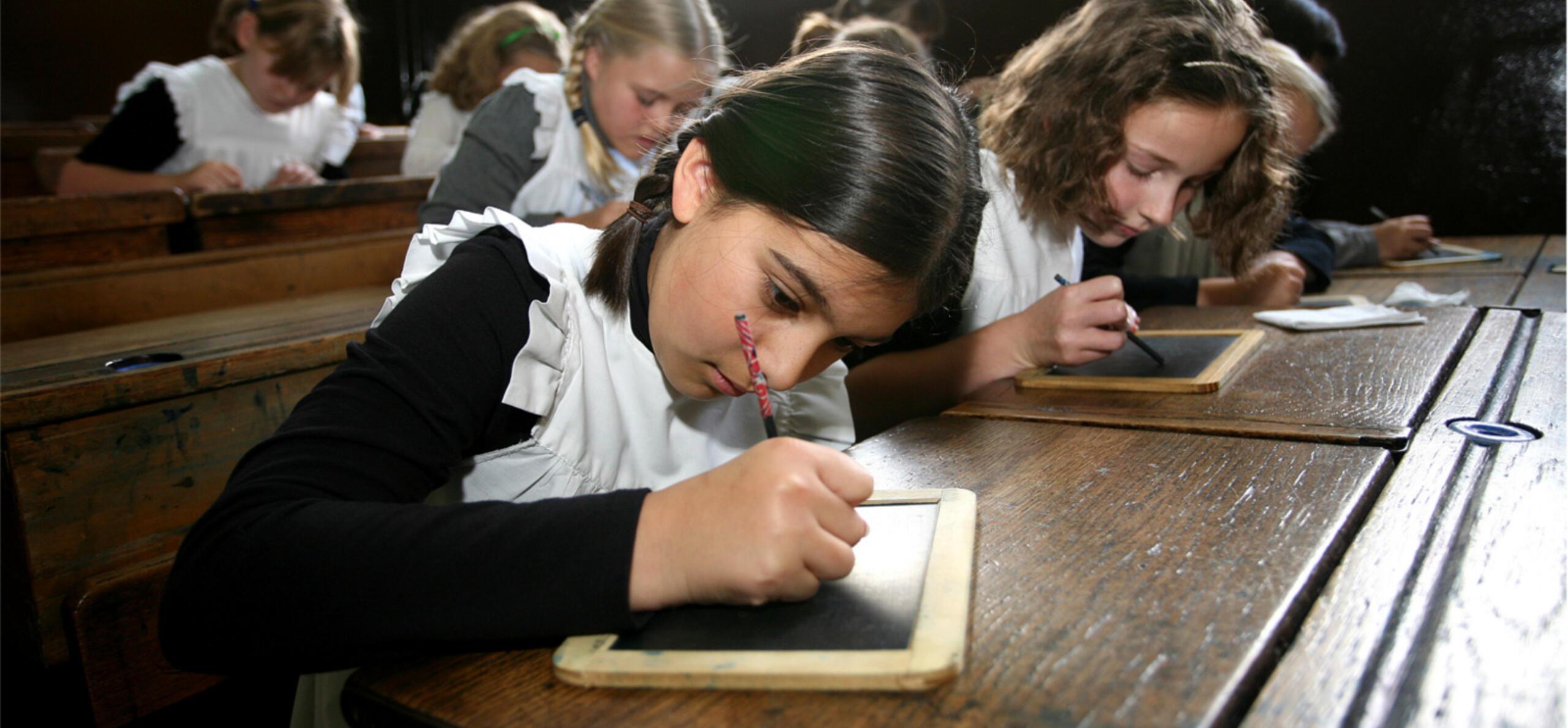 The Victorian Schoolroom session is carried out in two parts; the introduction and the immersive hour long experience in the authentically furnished and decorated school room. During the introduction, we talk about the tremendous changes that took place in the Victorian era. For the purposes of this session these changes culminate in the introduction of free schooling for all in 1891, with the aim of having a literate and numerate workforce. The schoolroom itself is setup as it would have been in 1893. The children have the opportunity to dress up, if they are not already in Victorian costume.