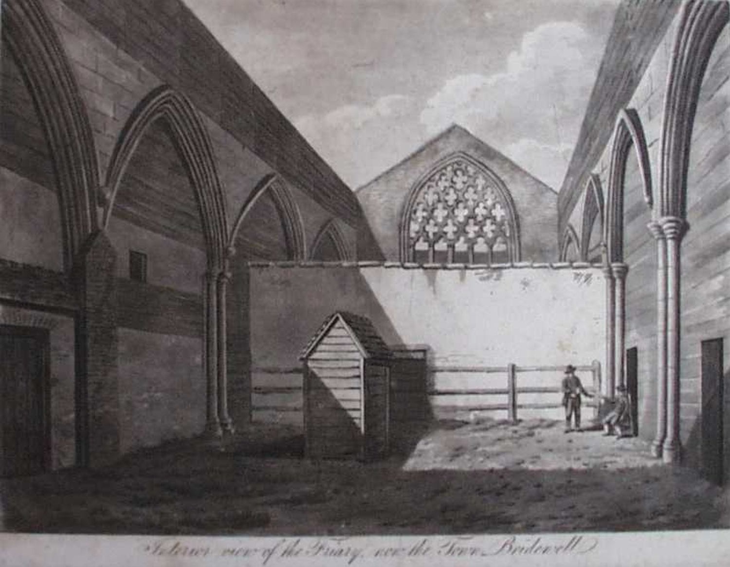 Nearby Friar Street was known as New Street back in the 12th century when it still was fairly new. When a friary was set up there in the early 14th century it became known as Friar Street. In 1543 the church of Greyfriars became the town’s guildhall. In 1578 it was used as a poorhouse and then a prison. The roofless nave of the church was divided into a areas for men and women, the north aisle on the right contained the cells. In the 1860s it was bought by a local clergyman, the Rev. William Phelps, restored and reconsecrated in 1863. It remains the best-preserved English Franciscan church.