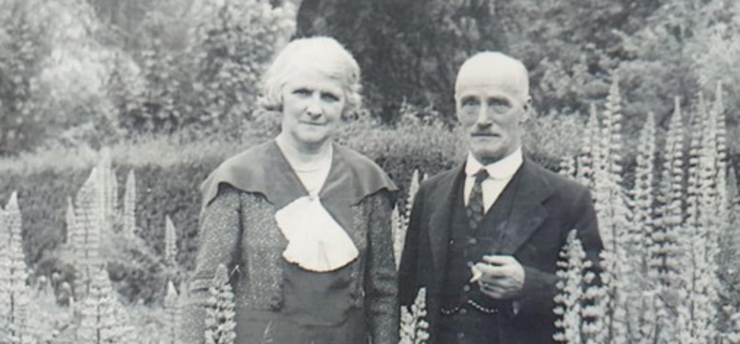 Jessie Anne and Fred in a friend's garden, in retirement
