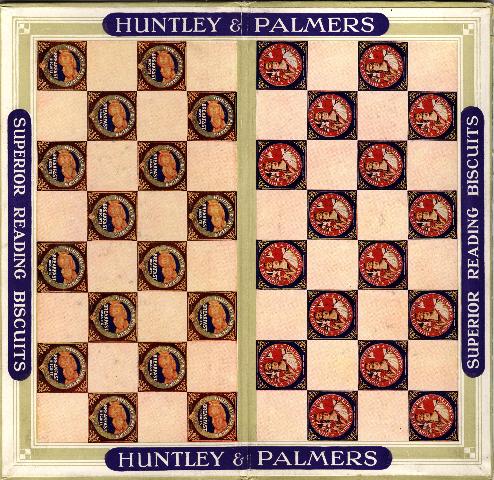 This is a board for a game of draughts, between Empire Assorted and Breakfast Biscuits. In 1926 the company mistakenly celebrated its centenary and this board could have been issued as part of those celebrations. (REDMG : 1997.130.26)