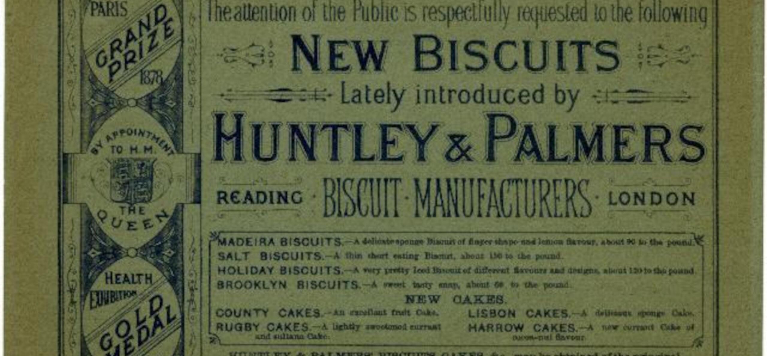 During the whole of the nineteenth century, little print advertising was undertaken by the firm. The few advertisements that were displayed were black and white and appeared in well established newspapers or local directories. George Palmer preferred to rely on good reputation, quality products and decorative tins rather than invest heavily in marketing.