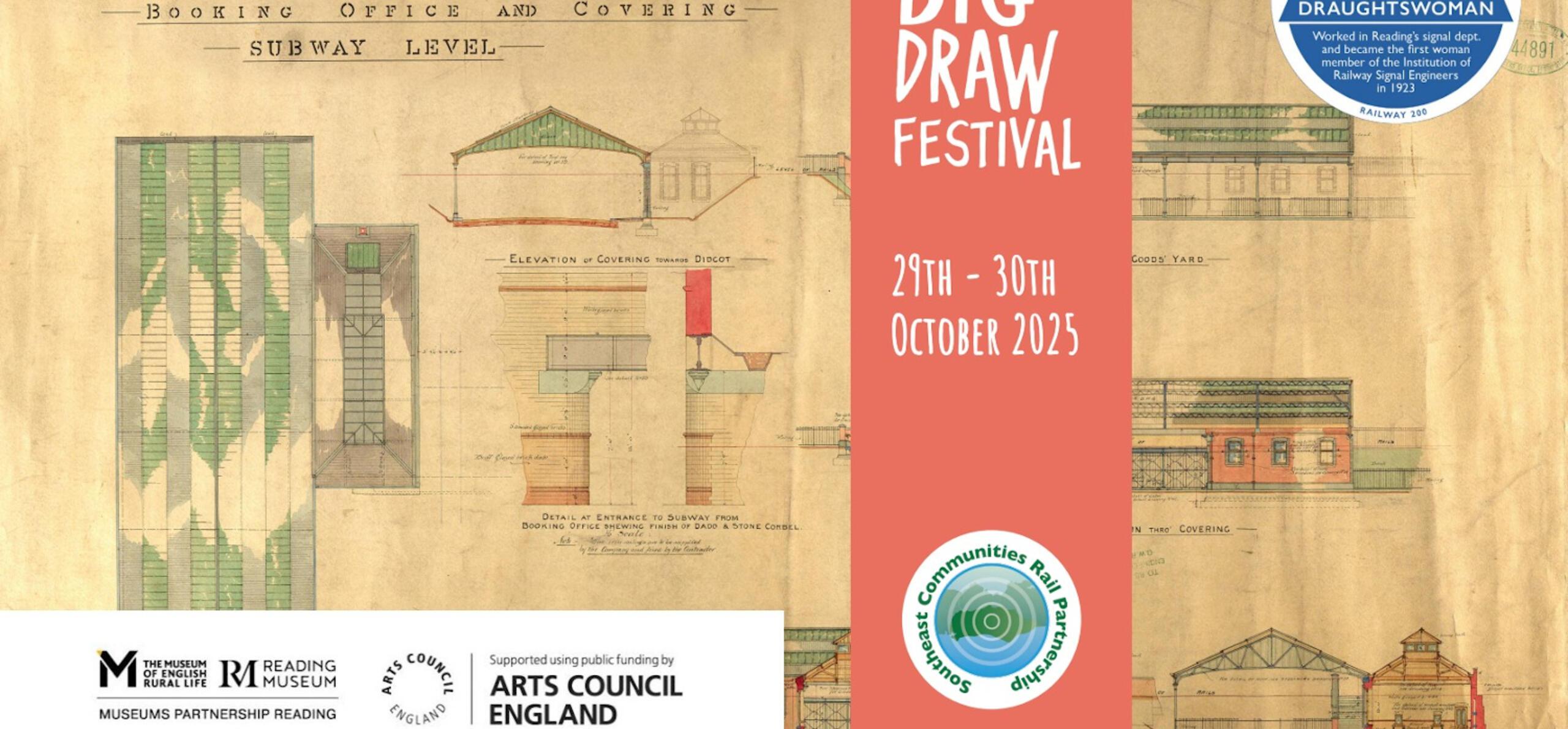 Join Museums Partnership Reading and Southeast Communities Rail Partnership to celebrate Railway 200 and this year’s BIG Draw Festival. Discover the story of local pioneering draftswomen Elsie Winterton and be inspired by archive station pictures and plans to create your own drawings.